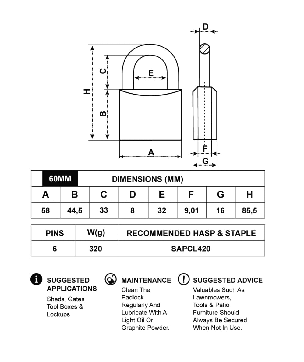 / Padlock 60mm Brass Inyati Blister Packed