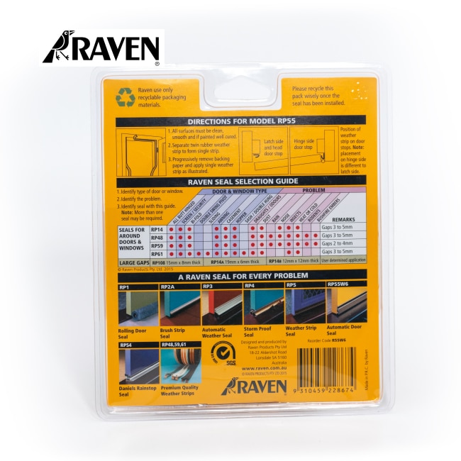 *Location: Perimeter of doors and windows *Min/Max Gap cover: 3mm to 6mm (user determined *Sizes: 5m coil pack (2 x 2,5m) *Adhesive fit: (surface must be dust free)